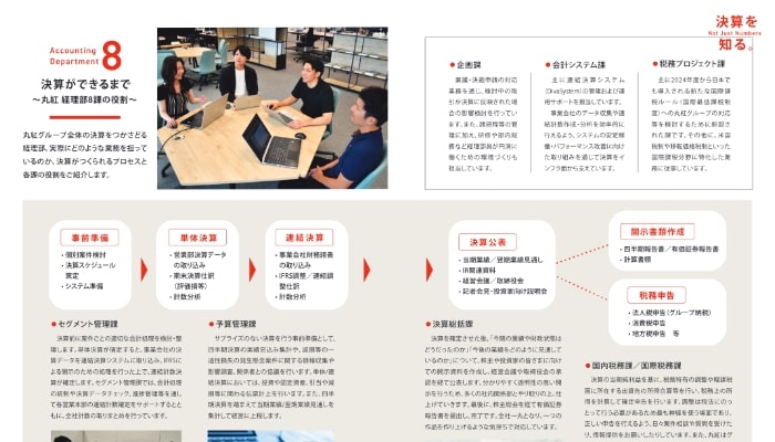 丸紅・経理部の基幹業務は、当社の決算書・税務申告書を適正に作成することですが、昨今は、会計・税務面での予測機能を高めることに力を入れています。具体的には、経営管理計数を管理・分析することを通じて、経営課題の早期発見や対応策の提案を行うとともに、営業部が推進する個々の事業投資・M&A案件においては、取引の交渉段階から会計・税務のリスク分析を行い、買収後に不測のリスクが生じないようにしています。
